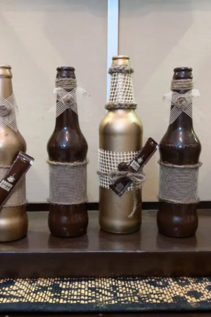 Rope quickly fixes your bottles if they appear too simple. Using adhesive, firmly wrap the bottle with jute.