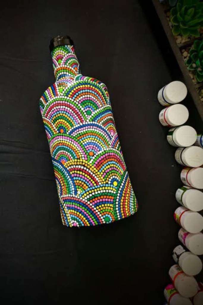 Make the group seem deliberate by painting each bottle a distinct color or theme. Avoid clashing, keep designs simple.