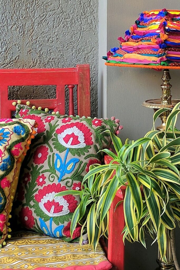 This vibrant, colorful hue is ideal for boho corners or porches that need personality. Combine vibrant colors.