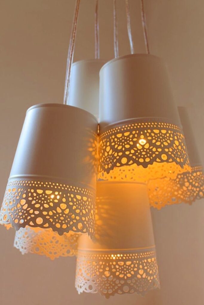 These lace-cut cup shades offer a warm, artistic glow that works wonderfully over dining tables or hallway nooks.