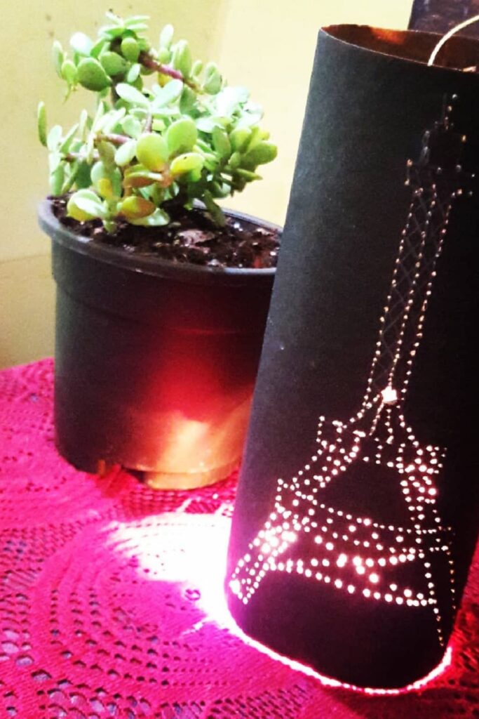 Place a small LED light inside so it shines through the pattern clearly. Bottom glow gives another soft layer of light.