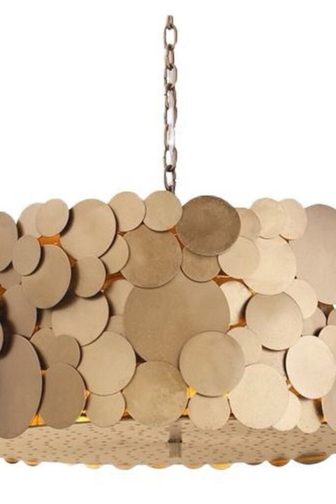 This striking shade creates a statement piece that patterned light around the space with metal circles.