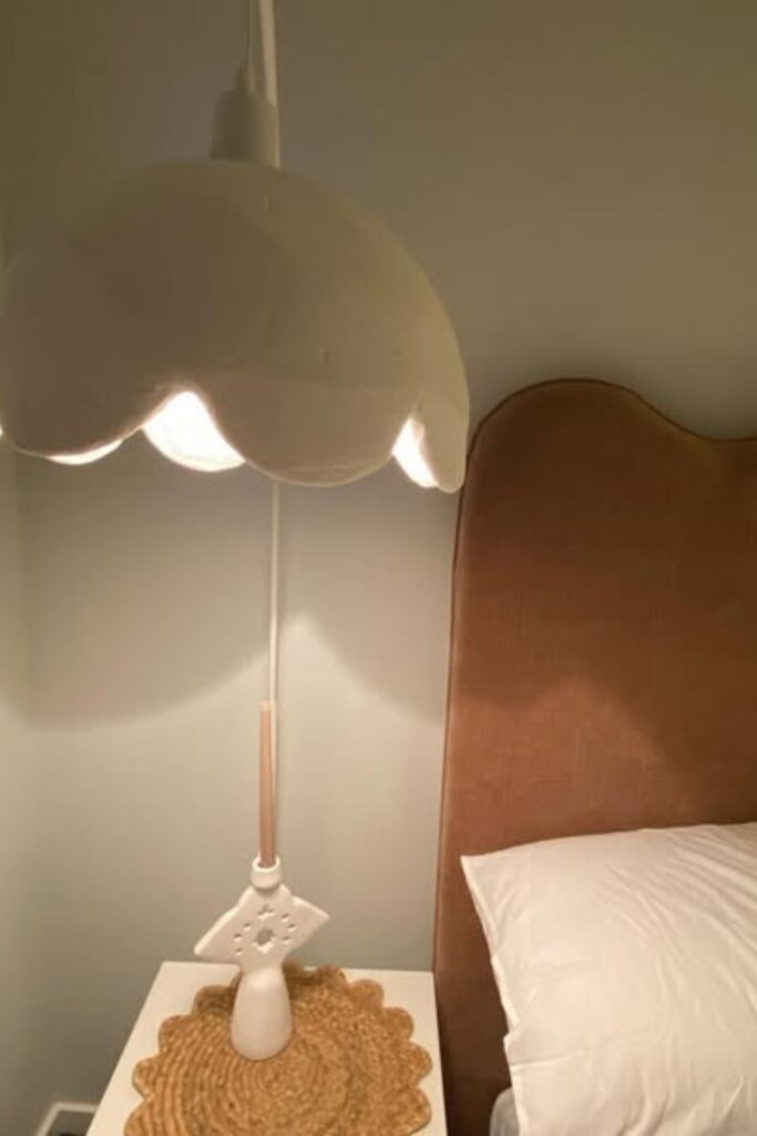 This scalloped clay-style shade gives warm, comforting lighting, suitable for bedroom and reading spots.