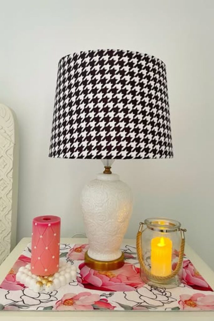 Add trim if you prefer a polished finish. Use an LED bulb to avoid heat, and check that the shade sits straight on your lamp.