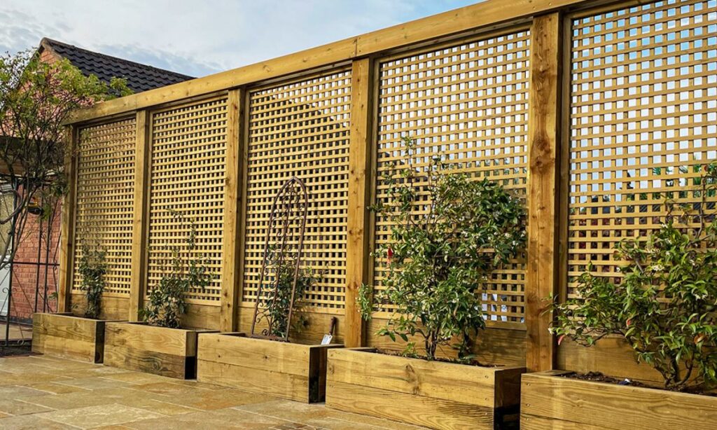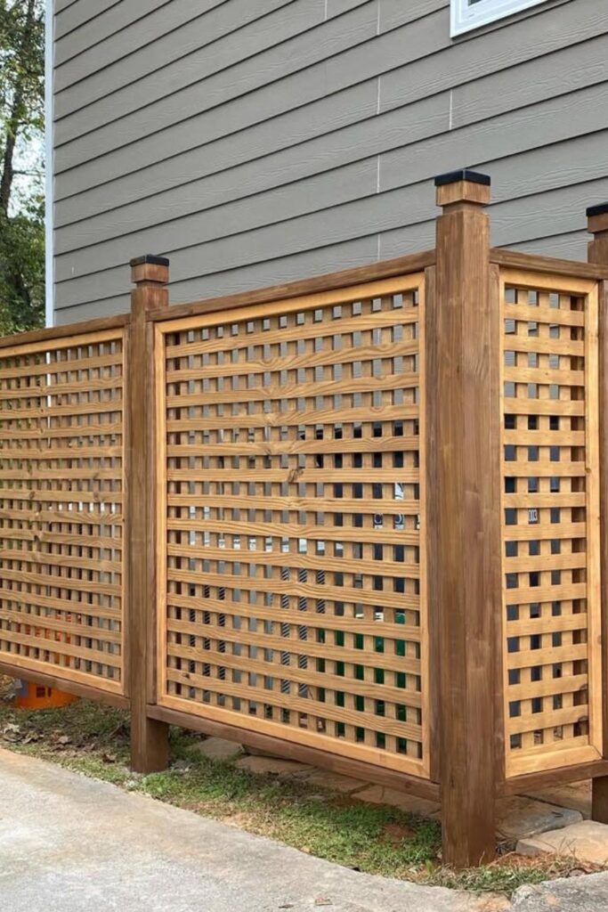 The solid base ensures complete privacy, while the lattice adds height and openness.