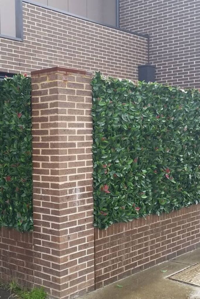 Give a plain wall a fresh twist with artificial hedge panels attached over brick.