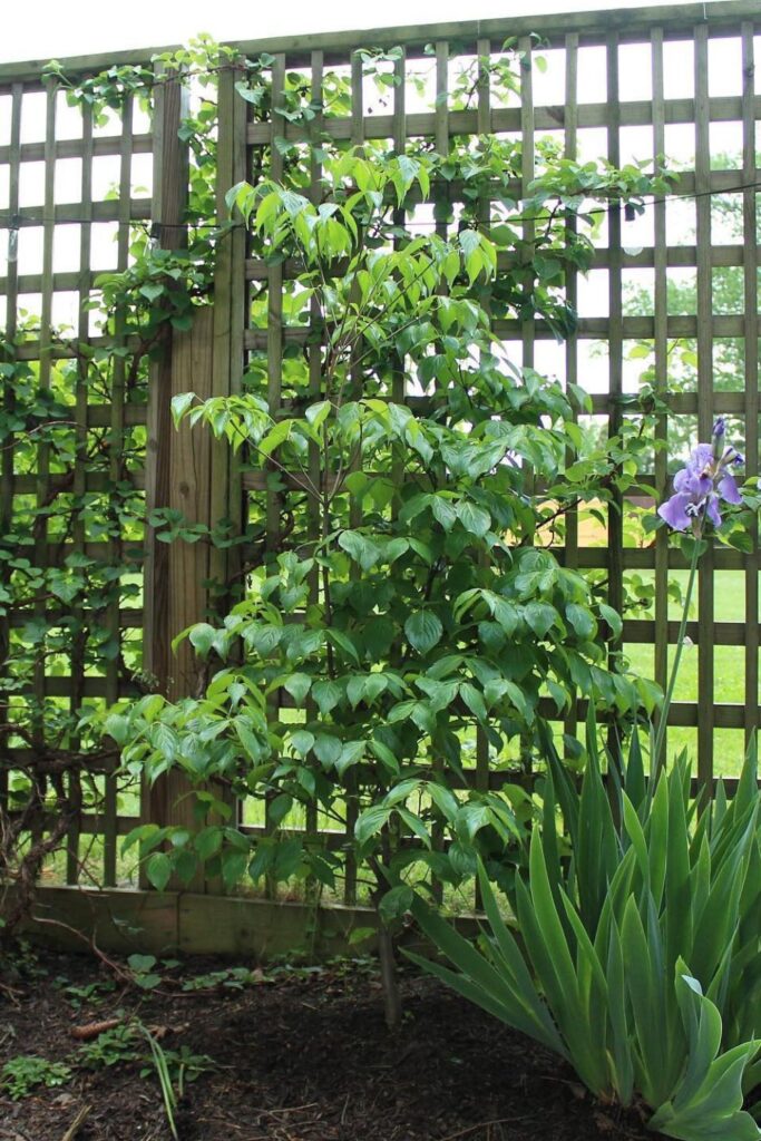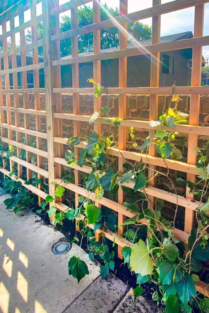 Build a simple cedar trellis to line your property for light privacy and climbing plants.