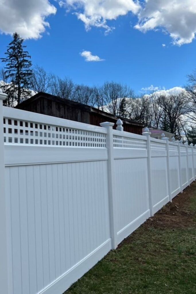 Upgrade privacy with a white vinyl fence topped with a decorative lattice accent.