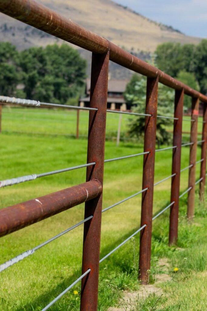 This sleek, industrial-style fence provides security without blocking views, making it ideal for large plots.