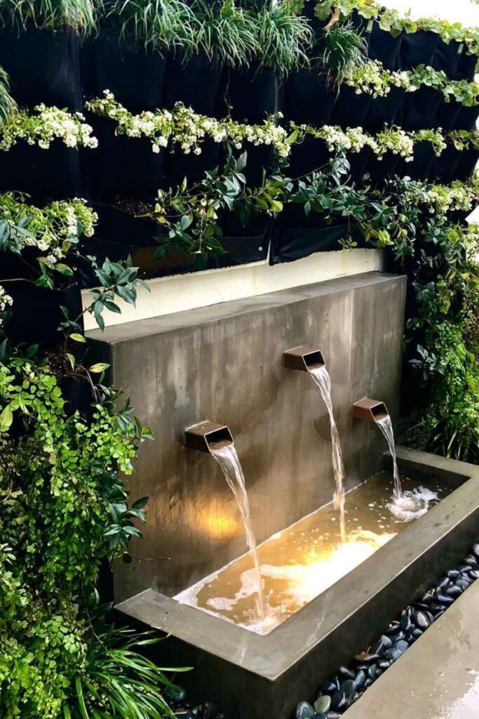 Add a sleek, modern touch with a stepped waterfall fountain.