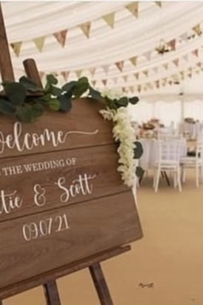 - 1.30 Rustic Welcome Sign for a Marquee Wedding