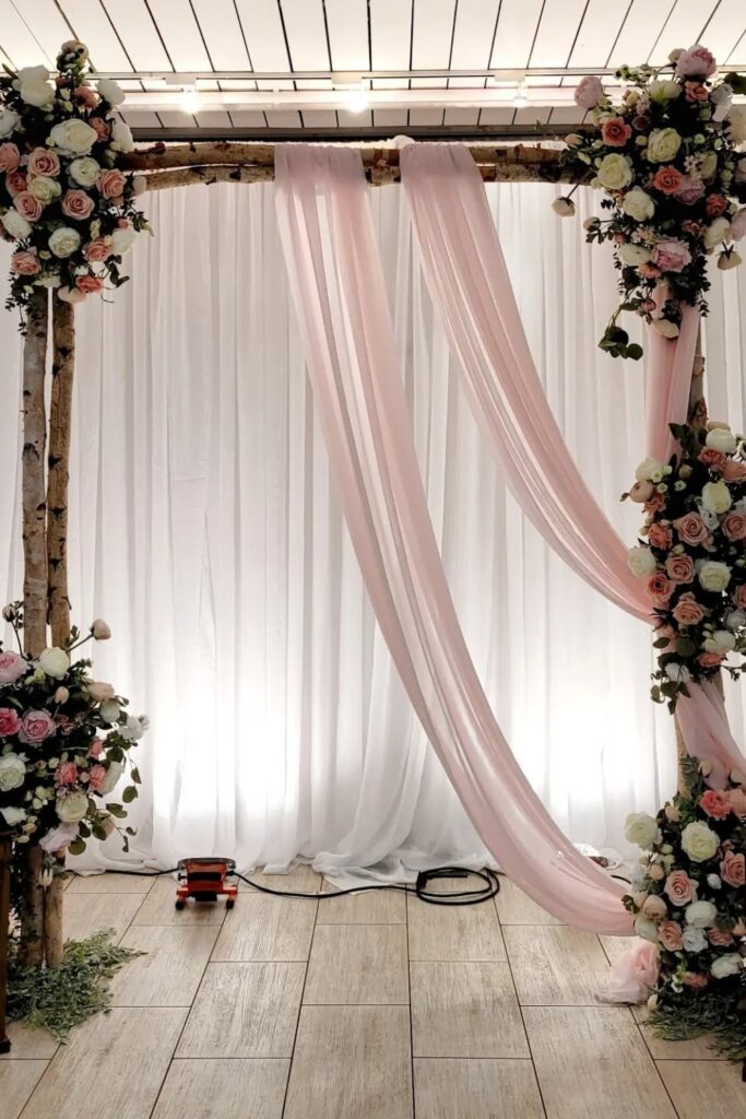 - 1.32 Romantic Birchwood Arch with Soft Drapes