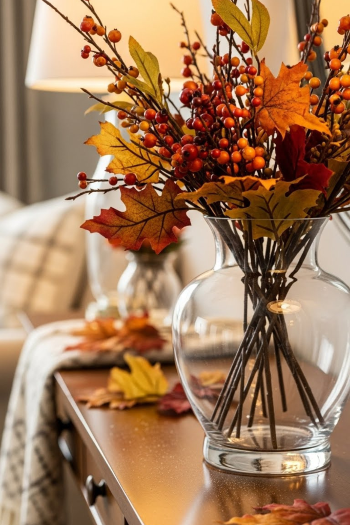 For fall meals or seasonal gatherings where the table needs to be warm without being cluttered, this arrangement is ideal.