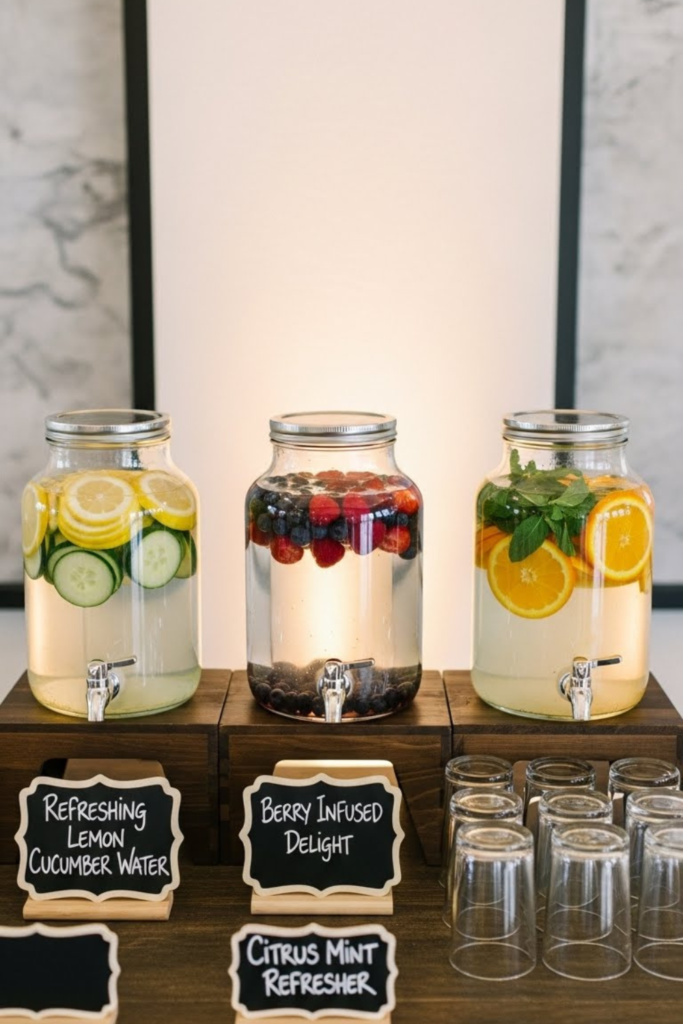 Drinks can be properly labeled with simple lettering using dollar store chalkboards or tags. labels are easy to read