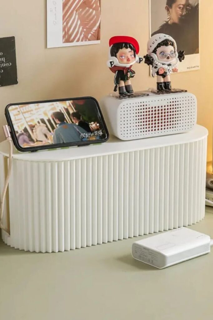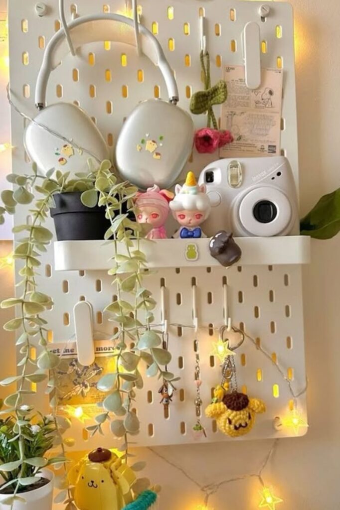 where little things eventually have a place. Hooks hold headphones, little shelves hold plants or cameras, and accessories clip neatly onto pegs instead of taking up space on a desk.