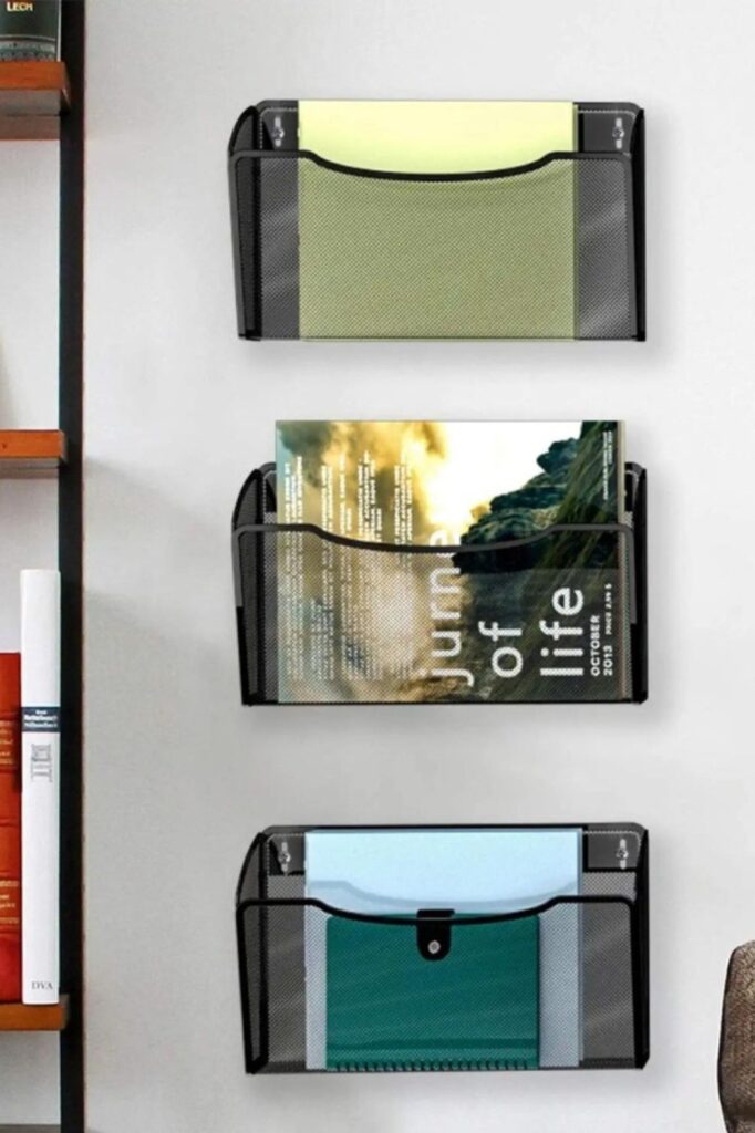 Wall-mounted file holders fix it by shifting papers from the surface to the wall. You can put different types of things in each pocket, including magazines, school papers.