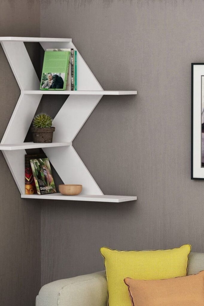 Corner walls often stay empty even though they offer perfect storage space. A zig-style wall shelf turns that unused corner into a stylish spot for books, small plants, or decor pieces.