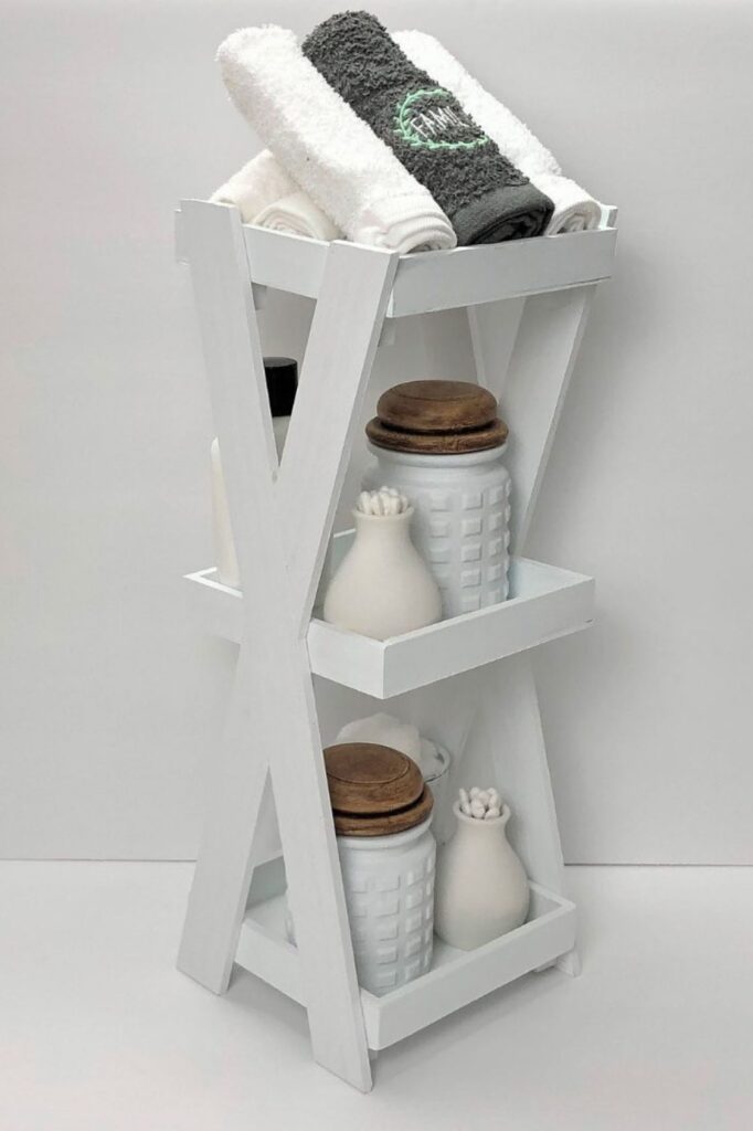 Without taking up a lot of room on the floor. Each level can hold rolled-up towels, small jars, skincare products, or bedroom necessities and yet appear orderly.
