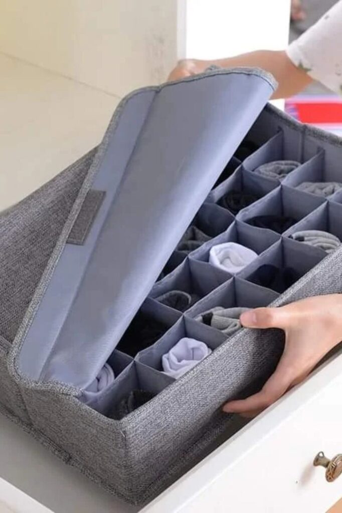 Drawer chaos usually starts with small clothing pieces that refuse to stay folded. A fabric organizer with divided sections keeps socks, underwear, or small garments separated.