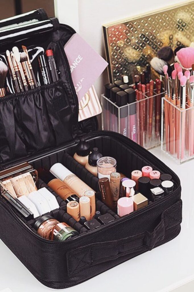 Vanity surfaces fill up quickly once makeup starts spreading across the table. A compact makeup case keeps every product contained while still making everything easy to find.