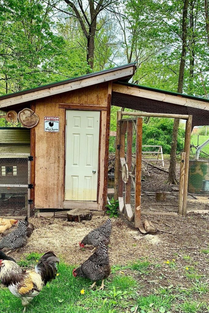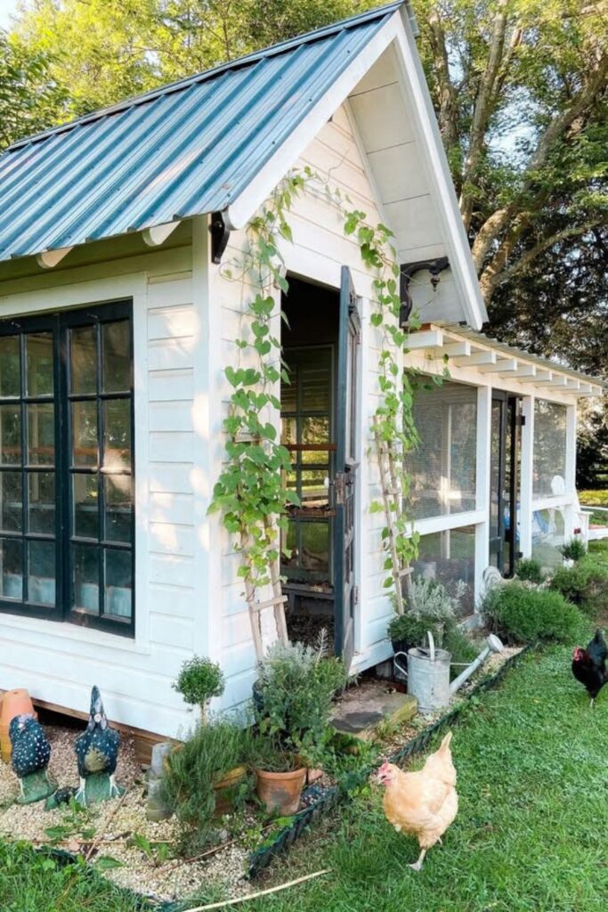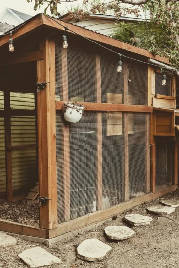 Blending cozy style with functionality, this design ensures chickens are comfortable while adding unique homestead appeal to your space.