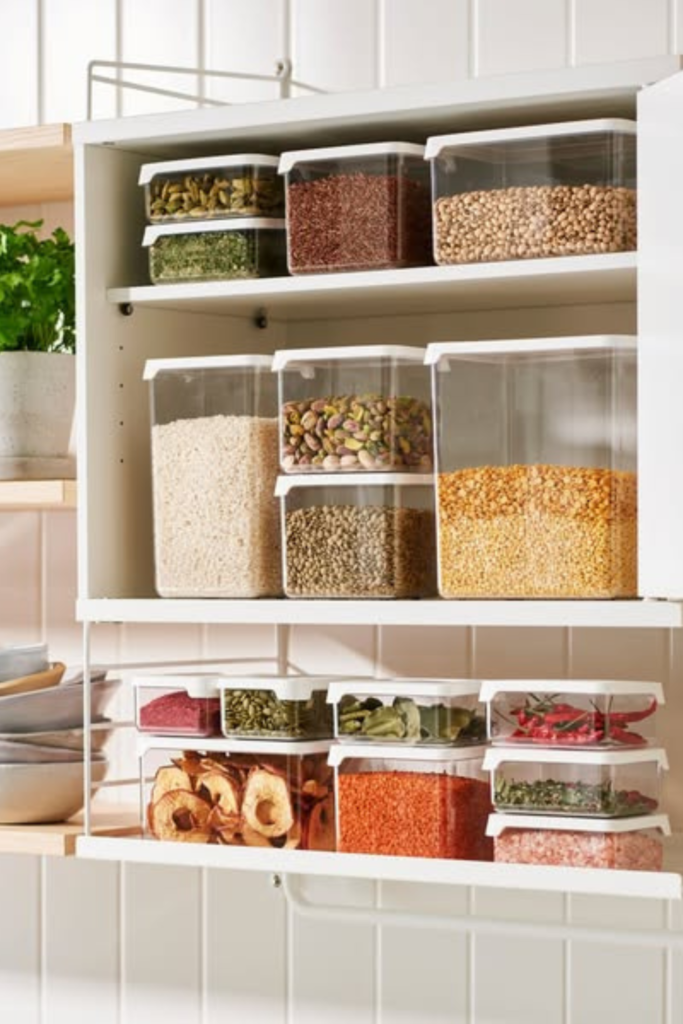 Many items share the same space. Group foods by category: grains, beans, snacks, baking items, you always know where to look.