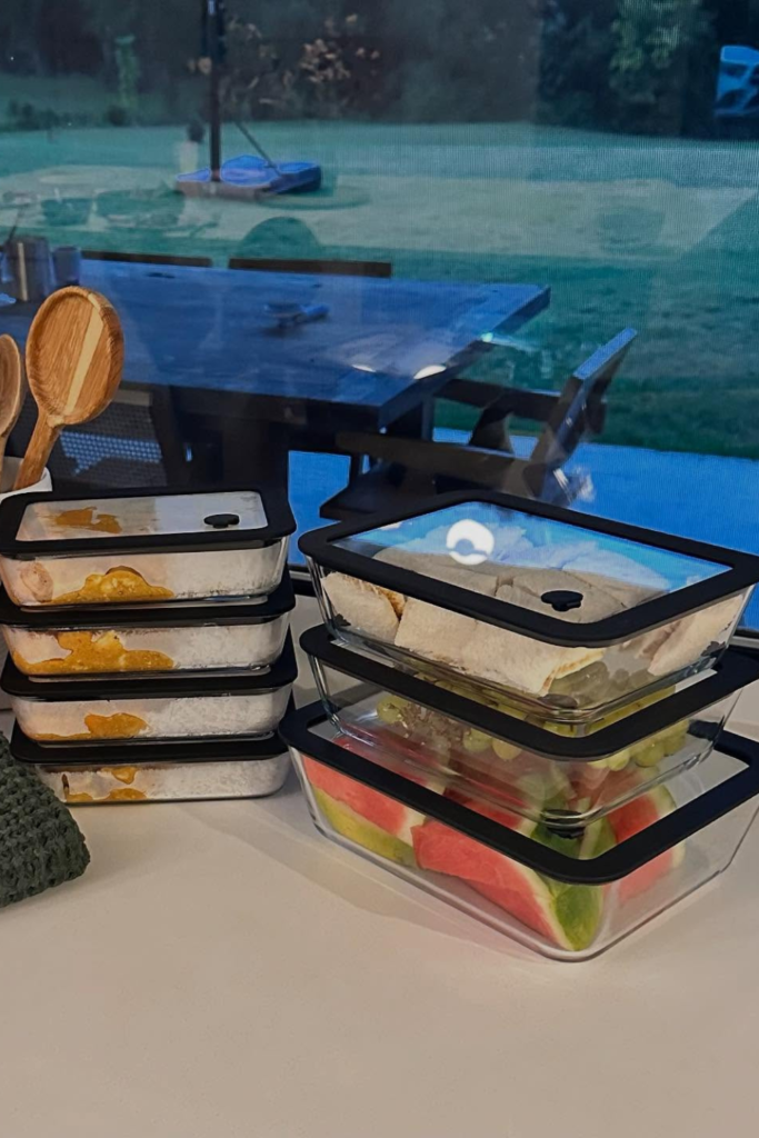 Bright fridge lighting and clear lids make each layer visible, so nothing gets pushed to the back and forgotten.