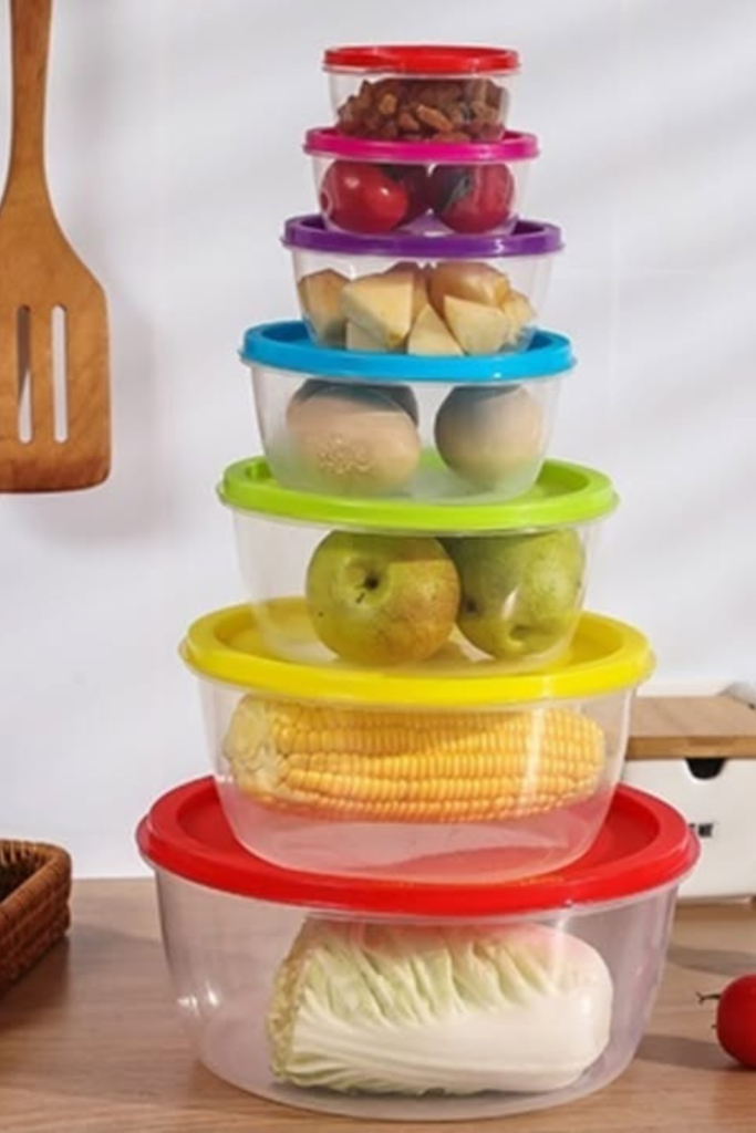 Use different lid colors to match container sizes, everything pairs fast. Stack larger bowls at the bottom and smaller ones on top.