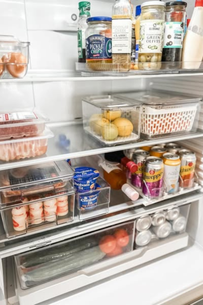 Food gets forgotten when tall items block everything behind them. Use low bins for produce and shallow bins for snacks and dairy.