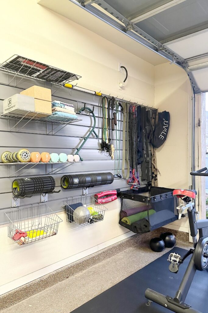 Blank walls inside a garage gym hold far more potential than most people realize. A slatwall system turns that empty surface into a flexible storage station.
