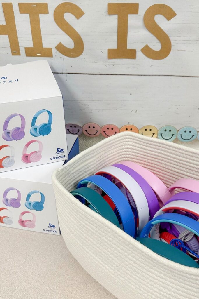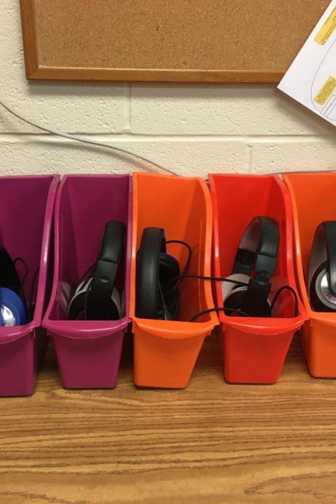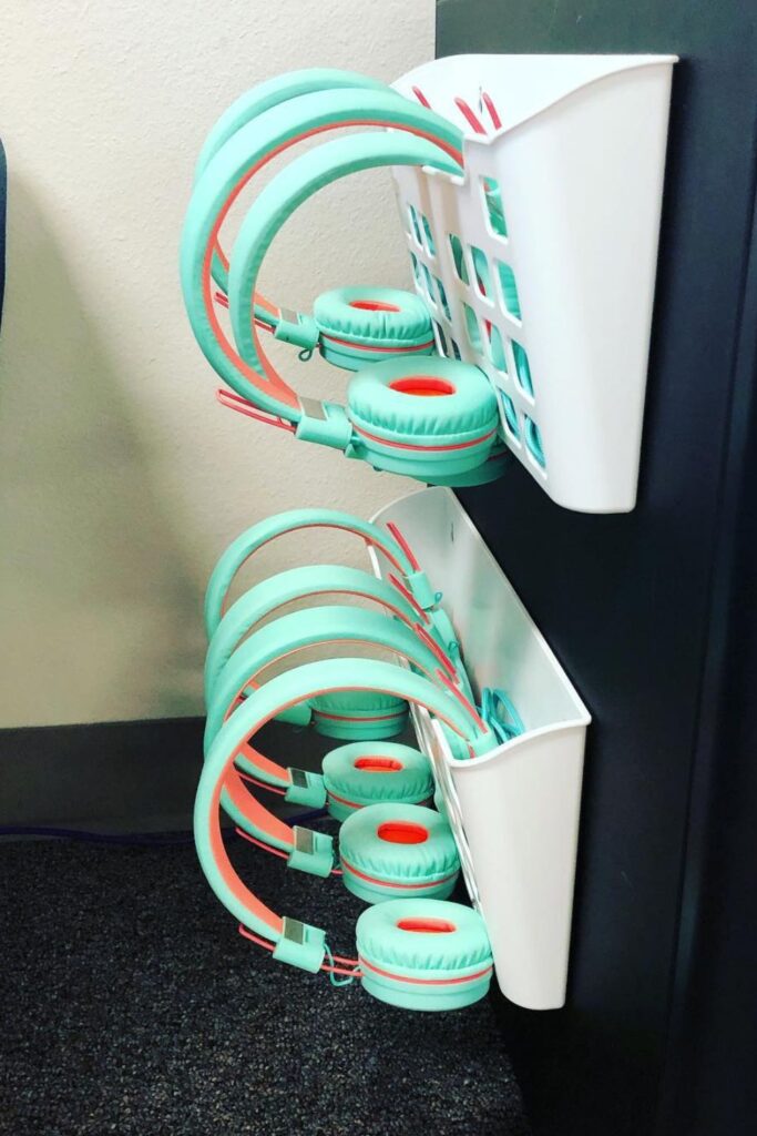 Bright bins are great for classrooms, libraries, or learning centers where a lot of people use headphones throughout the day.