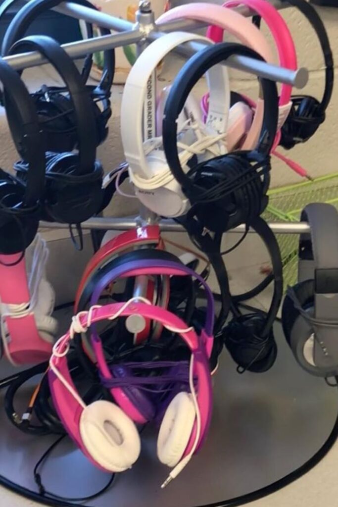 Shared headphones turn into a tangled mess the moment they all land on one table. Separate bins fix that instantly by giving every pair its own spot.