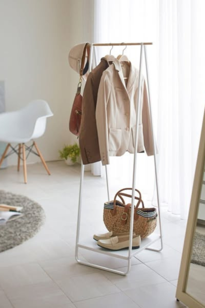 Morning routines run more smoothly once tomorrow’s clothes are visible. Slim standing rack works best in bedrooms.