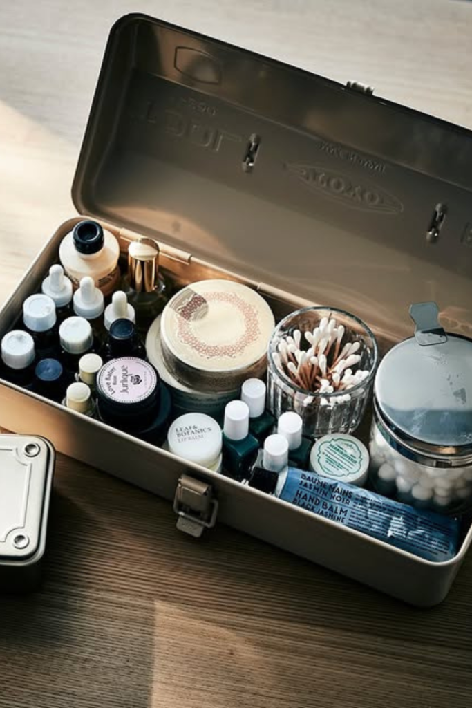 Deserve one dedicated spot, and storing only what you actually use for that routine and leaving extra space inside the box.