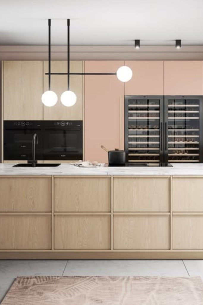 Visual clutter fades once storage blends into the architecture. Full-height, handle-free cabinets work best in kitchens.