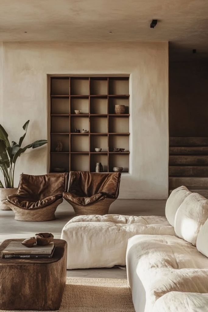 Rooms feel lighter once storage leaves breathing space. Built-in shelving works best in gentle living areas where too much décor quickly feels heavy.