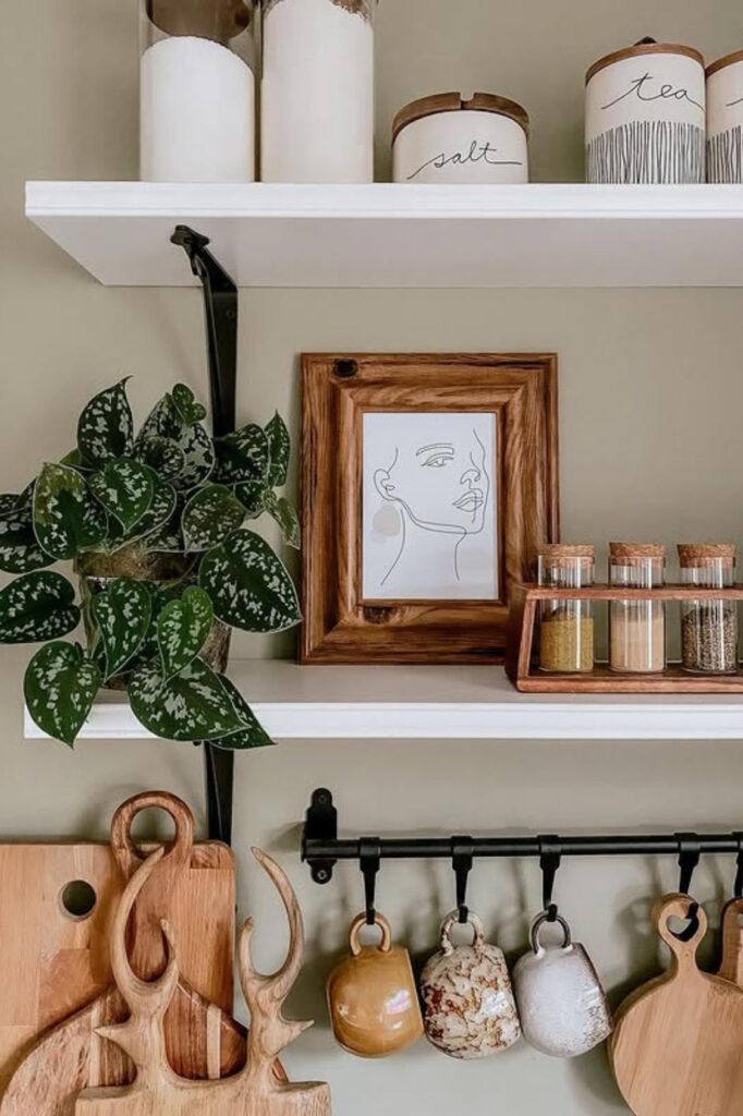 This makes them easier to reach and manage. A shelf in the right spot may accommodate spices, mugs, bowls, or even tiny plants without taking up space on your counters.
