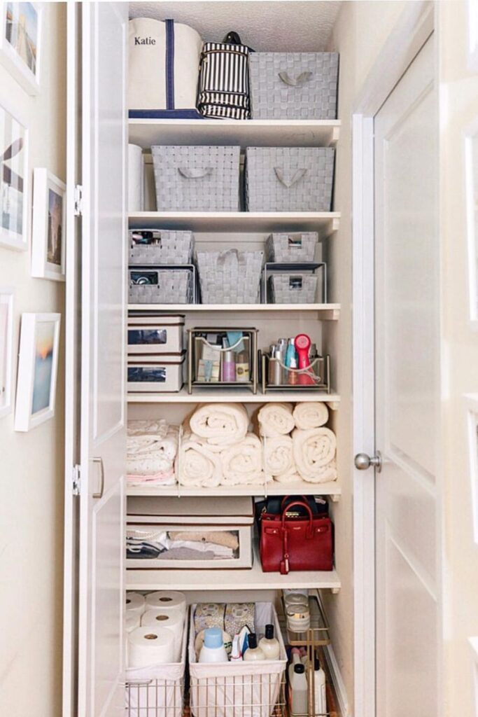 Because everything is stored in the same spot, most hallway linen closets get dirty. Towels slip about, sheet sets get mixed up, and little things get lost behind bigger stacks.