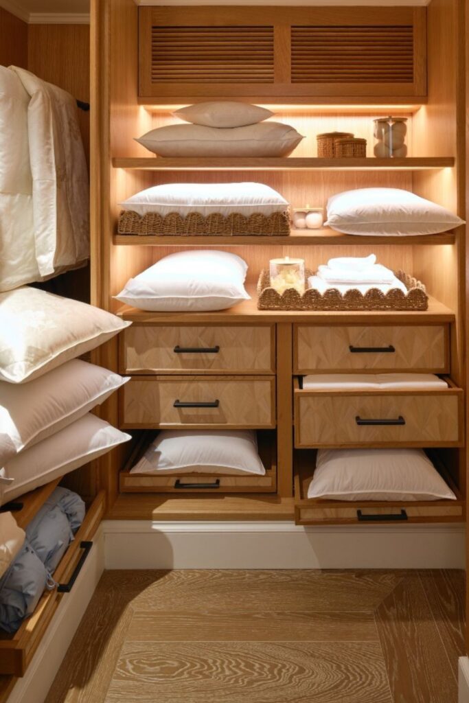 Keep pillowcases, smaller linens, and fragile items separate so they stay safe and easy to find. Lower drawers are great for bedding sets.