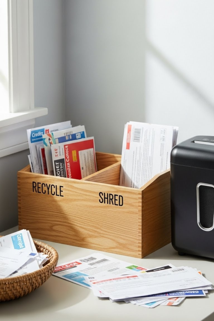 Paper lingers when shredding feels inconvenient. Place a shredder near where the mail gets opened. Junk disappears immediately.