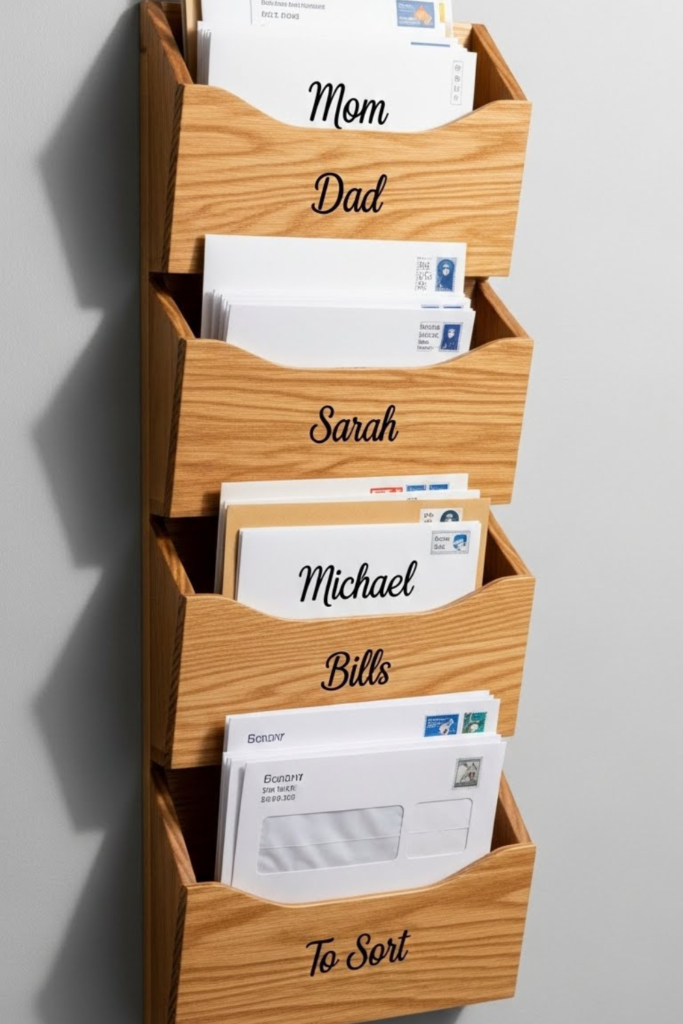 Shared mail creates confusion without ownership. Assign each household member a clearly labeled slot.
