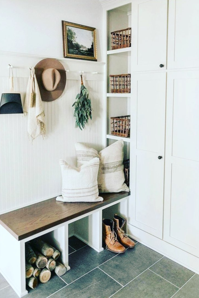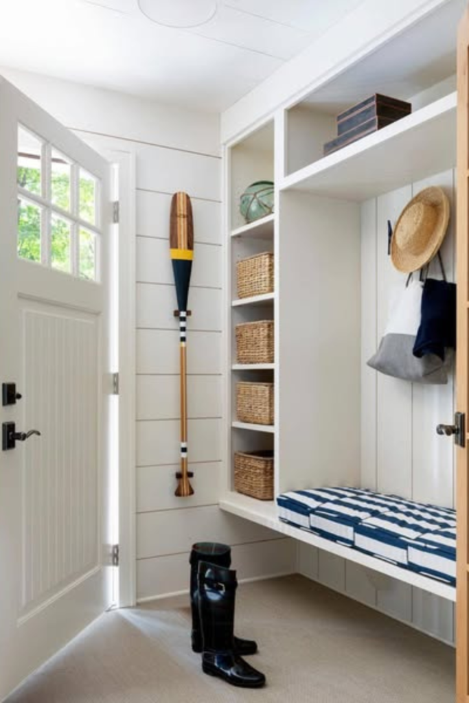 Most functional mudrooms use both. Keep daily items visible and hide everything else to maintain order without constant cleaning.