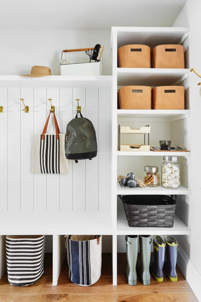 People use a mudroom to store the things that create the most mess the moment they walk in or out of the house.