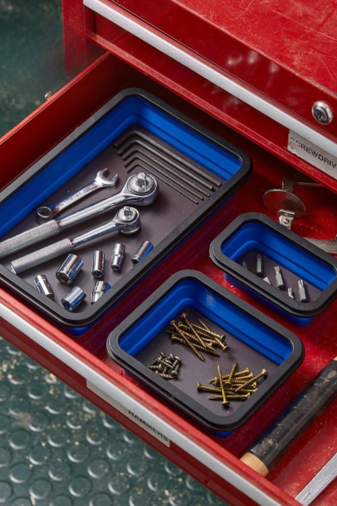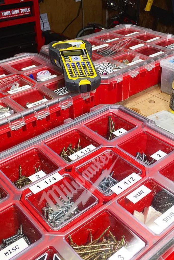 Add rubber or silicone trays to stop hardware from sliding, then group screws by task or size, this idea works best.