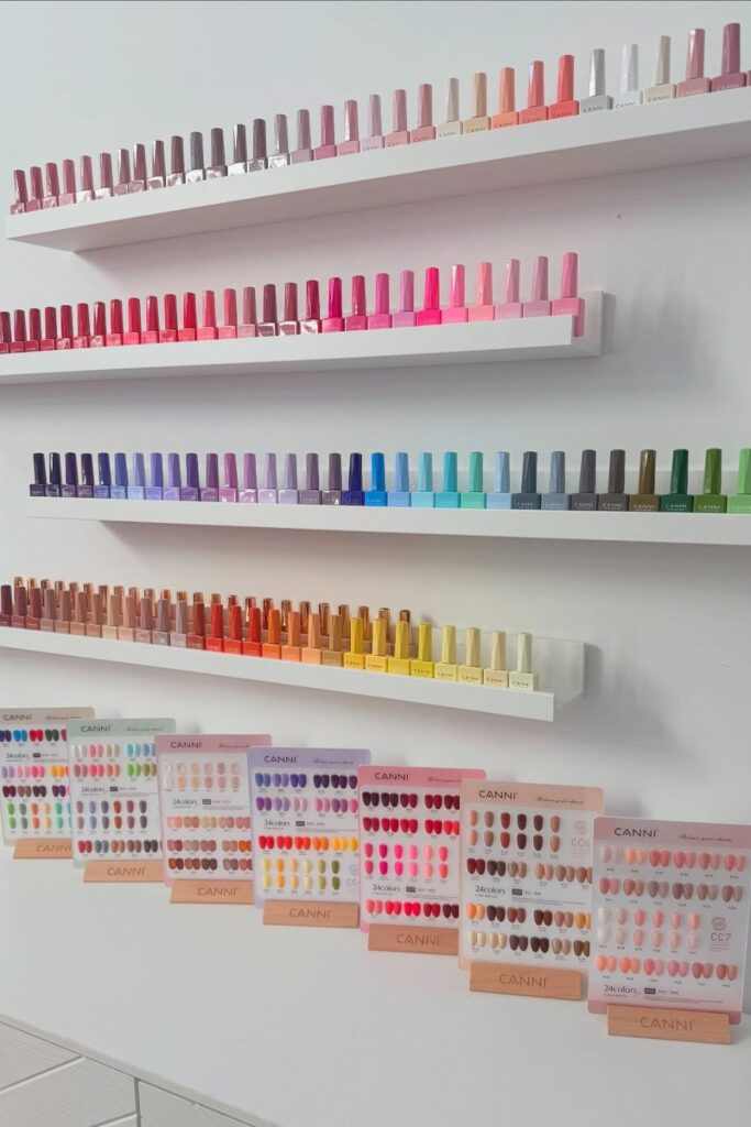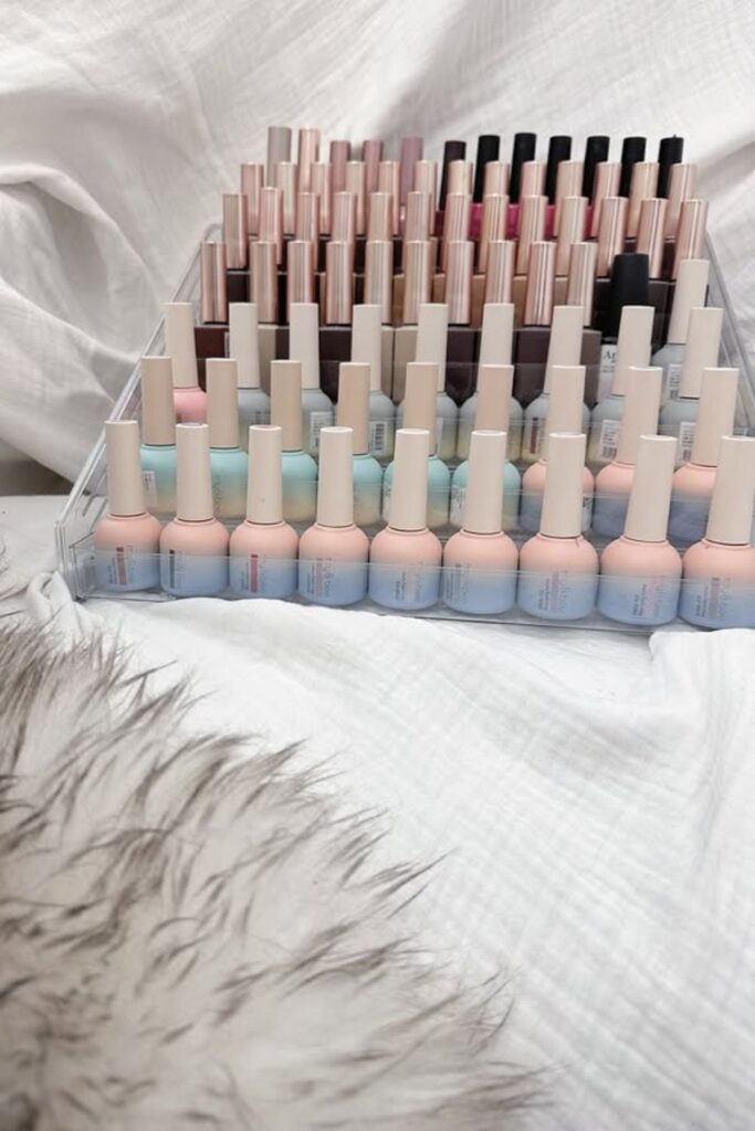 Arranging colors from light to dark or by shade family makes the layout look nice and helps you make decisions faster when you’re getting your nails done.