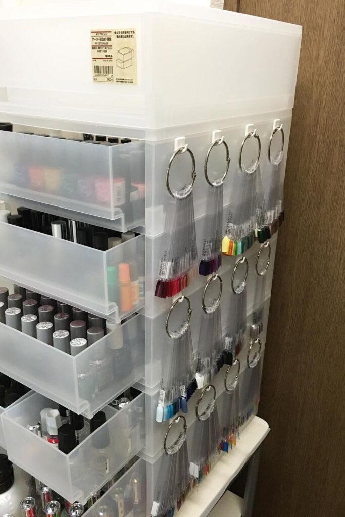 This kind of system maintains hundreds of bottles in order and turns a little area into a place just for nail storage.