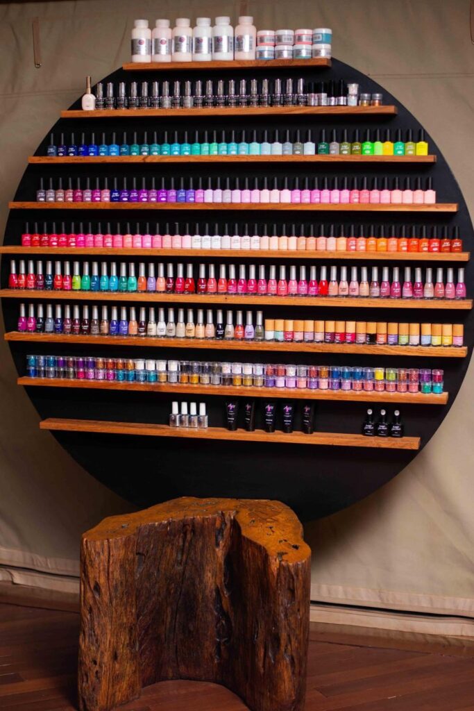Color choices become much easier when every bottle sits on a stepped display where nothing hides behind another shade.
