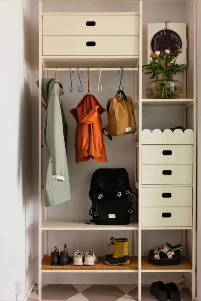 Open storage works best when you need quick access to everyday items like coats, bags, or shoes. Closed storage makes more sense when visual clutter builds up fast.