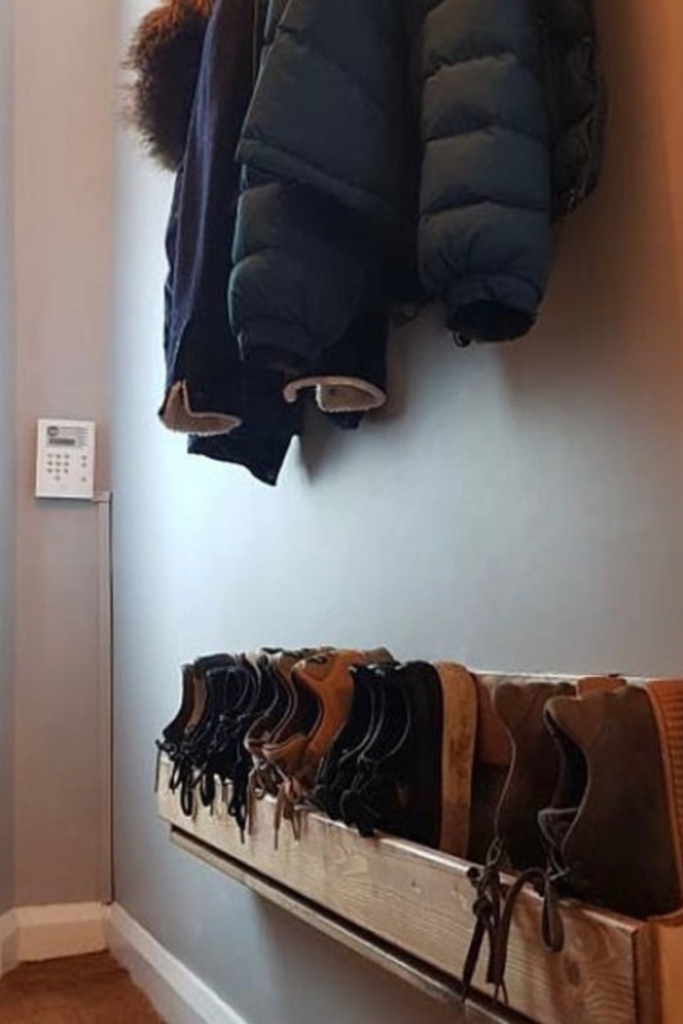 To hold pairs upright, A wall-mounted boot rack works best near entry doors where wet shoes need airflow.