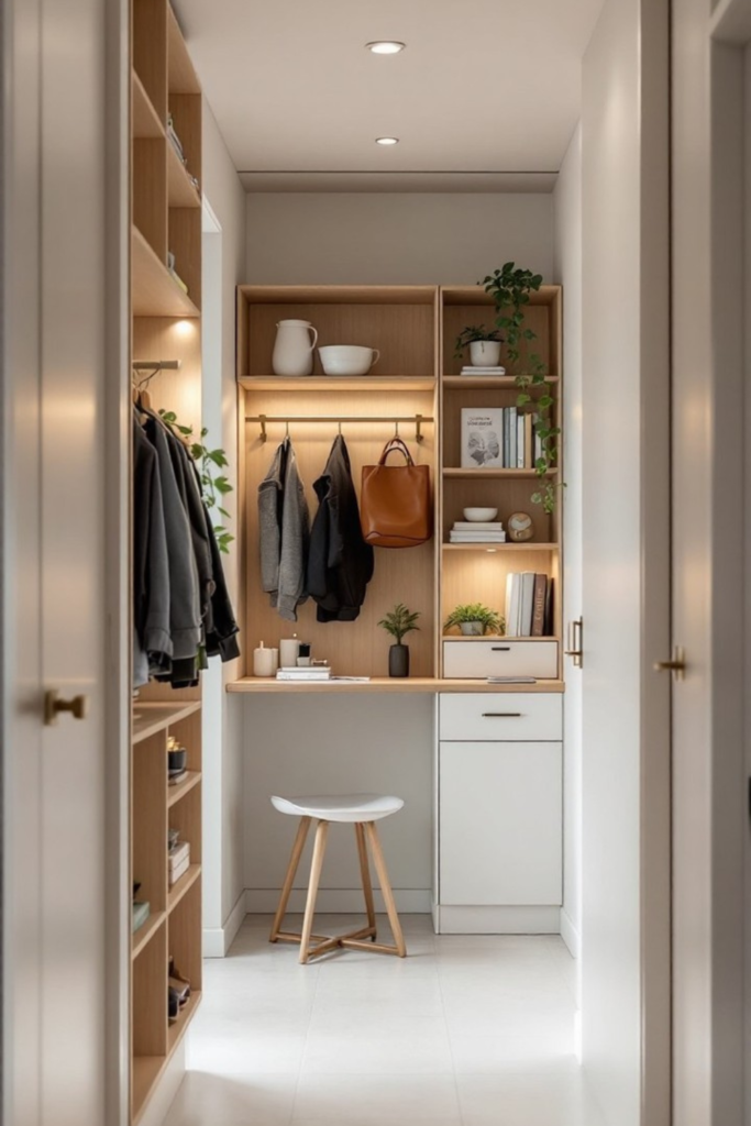Walkways get messy fast when coats and bags land on the floor. A slim built-in like this works best in narrow entry hallways.